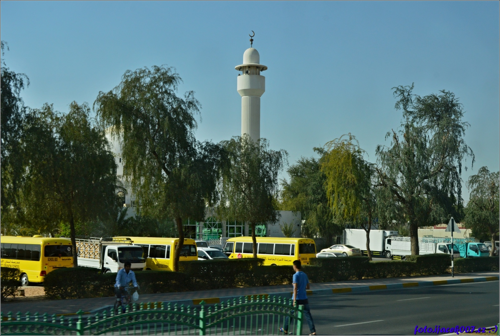 Školní autobusy před mešitou