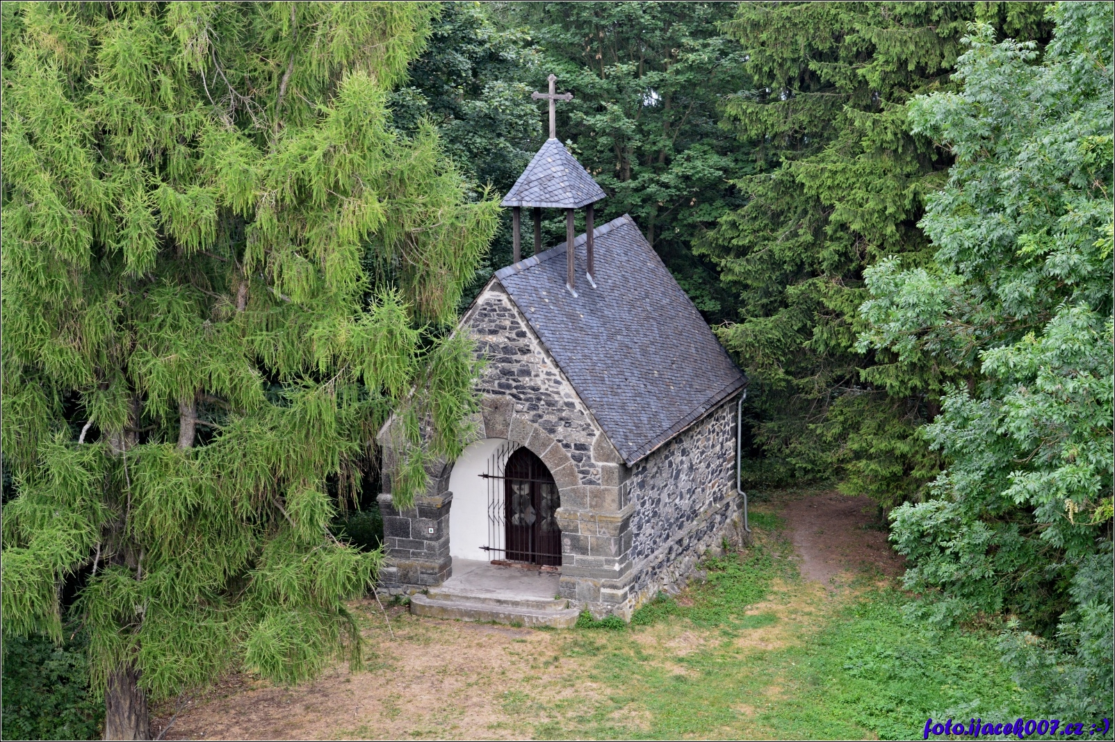 pohled na kapličku z rozhledny.