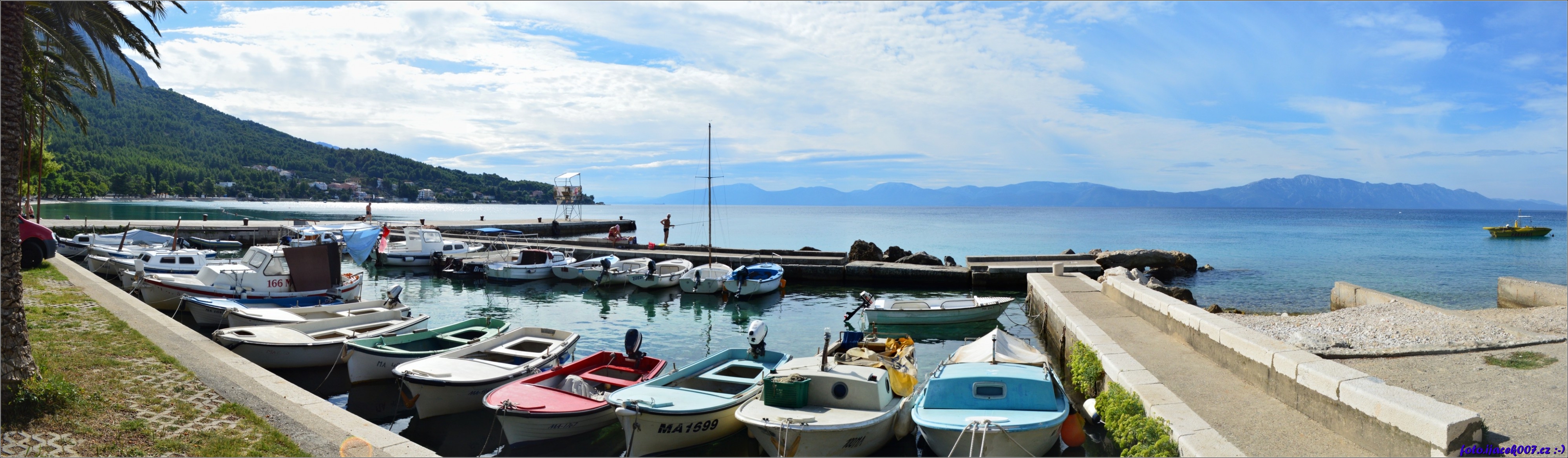 Pohled na přístaviště rybářských loděk a jediné velké molo.