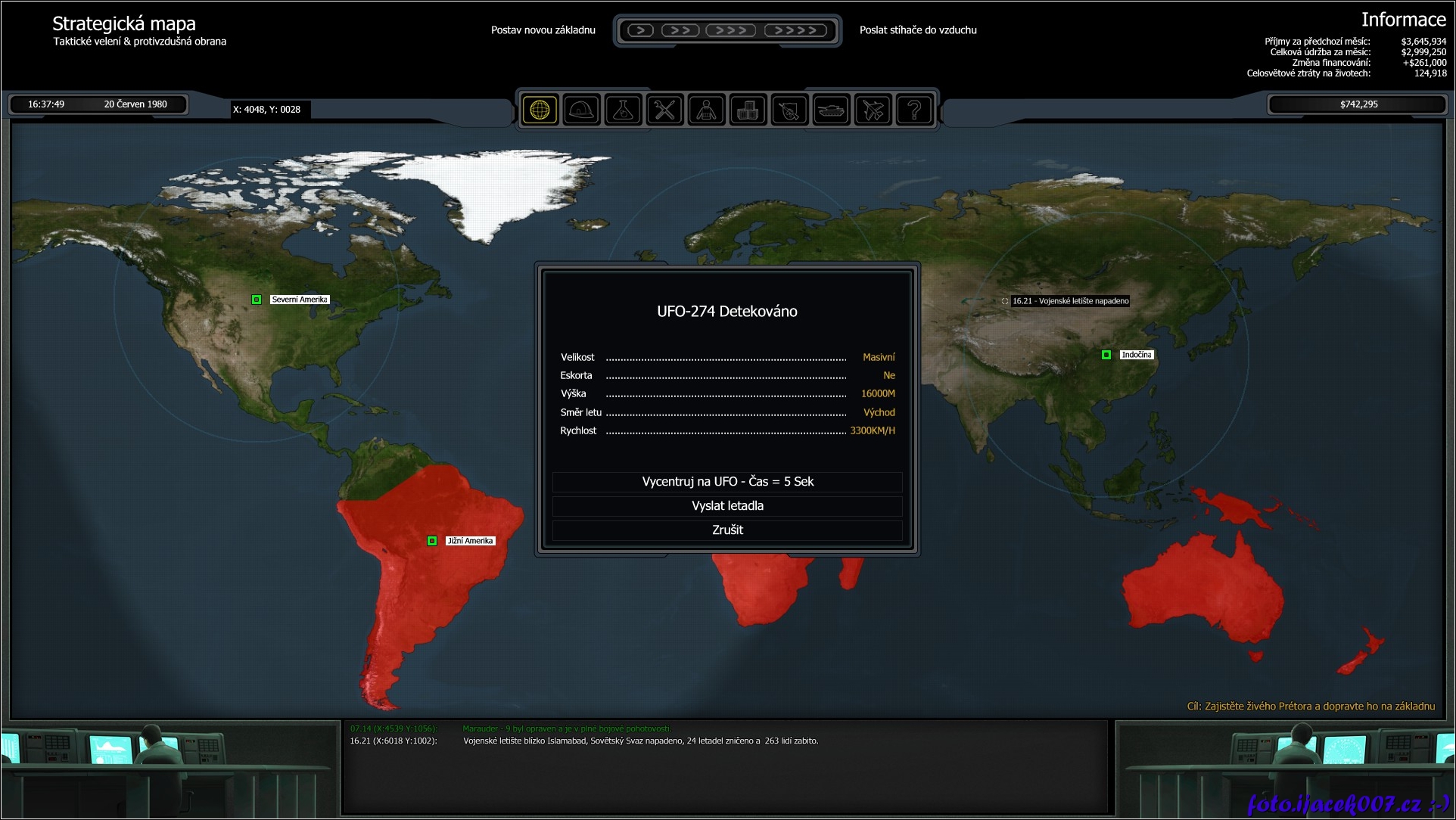 detekce nalezeného ufo na strategickém plánu světa