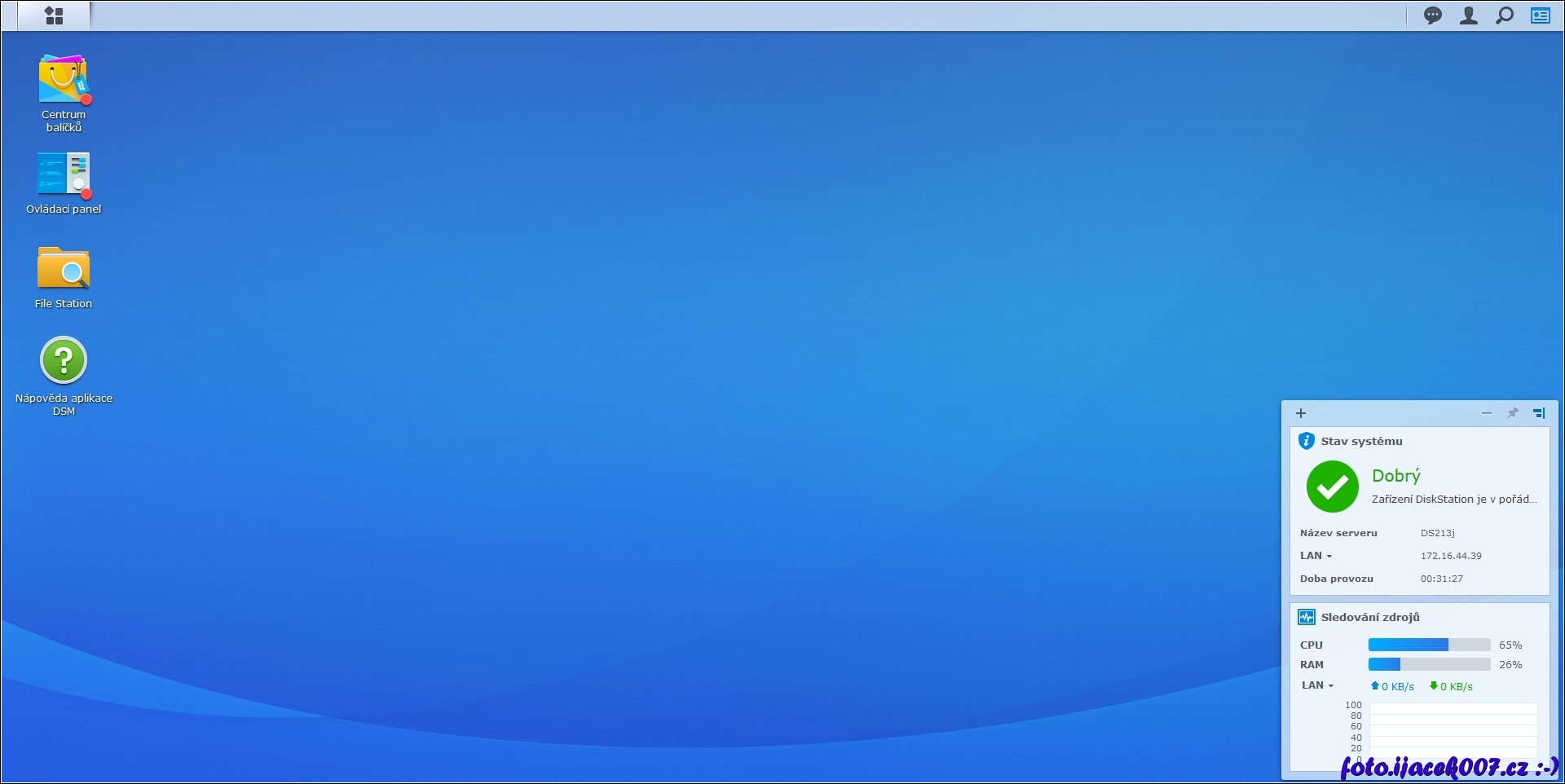 Pohled na pracovní prostor synology