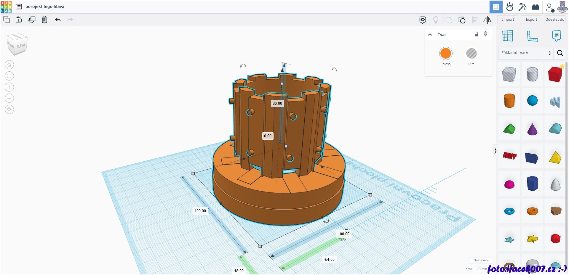 Pohled na webovou službu Tinkercad ve které si mužete rychle a zdarma vytvořit 3D model.