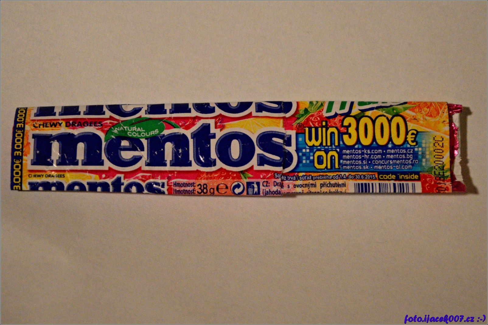 Obal ze soutěžního balení bonbonu mentos.