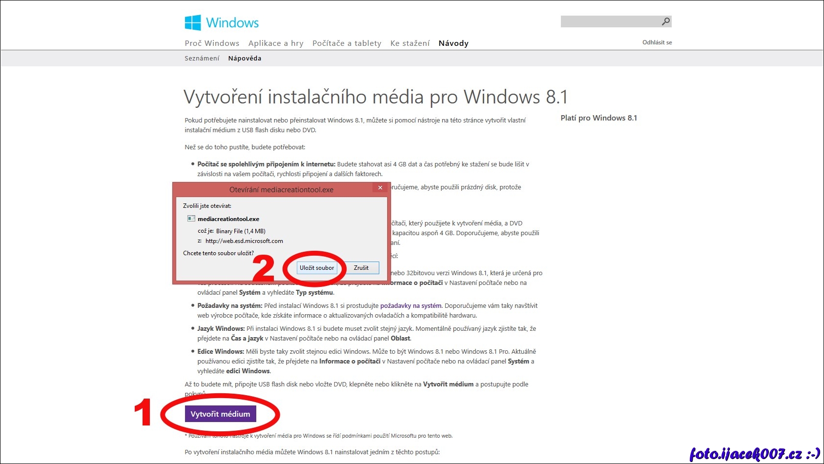 uložení programu na vytváření instalační médii na disk