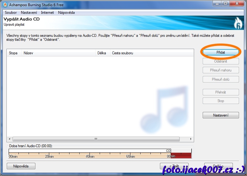 přidání audio souboru na disk