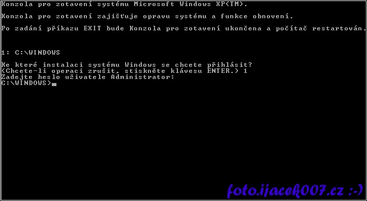 instalator windows XP recovery konzole příkazový řádek