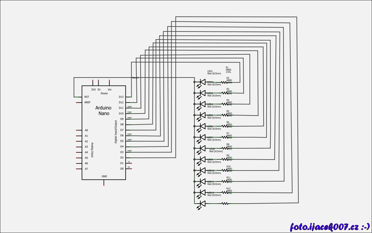 ARDUINO zapojení 12 digitálních výstupu k led diodám schéma zapojeni