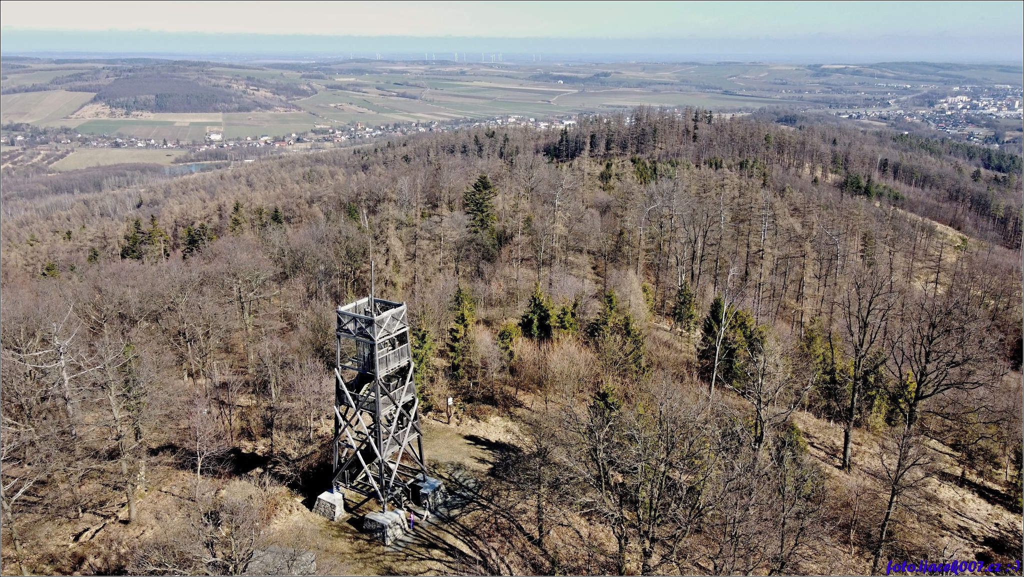 Pohled na rozhlednu na Ježníku nad Krnovem.