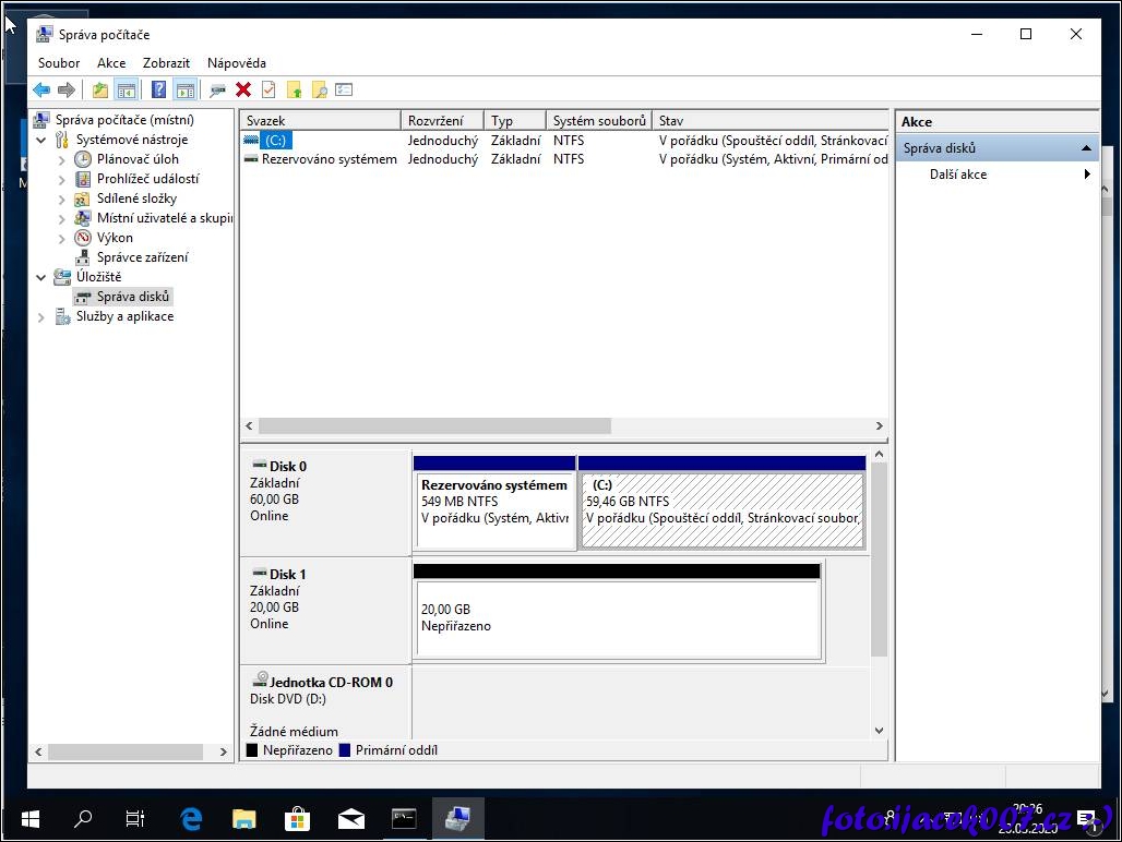 pohled na disky připojené v počítači pomocí správce pořítače.