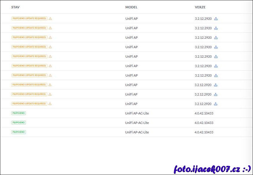 Staré Unifi AP bez upgrade nejde používat pod novým kontrolérem.