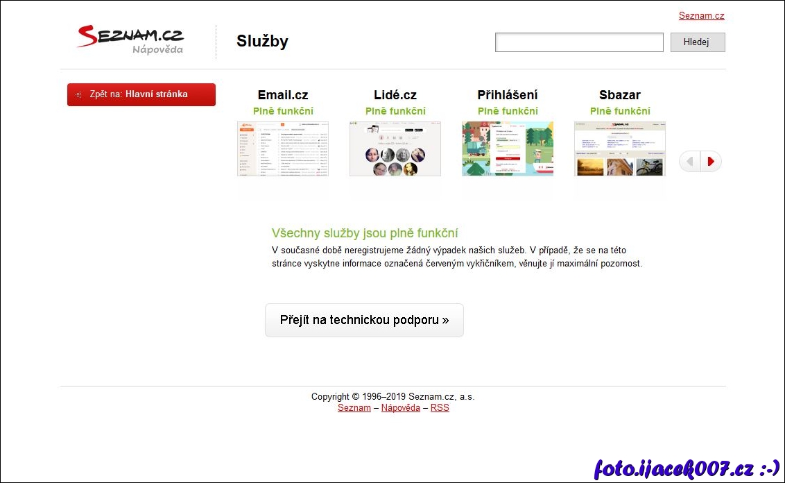 Tlačítko na technickou podporu portálu seznam.cz