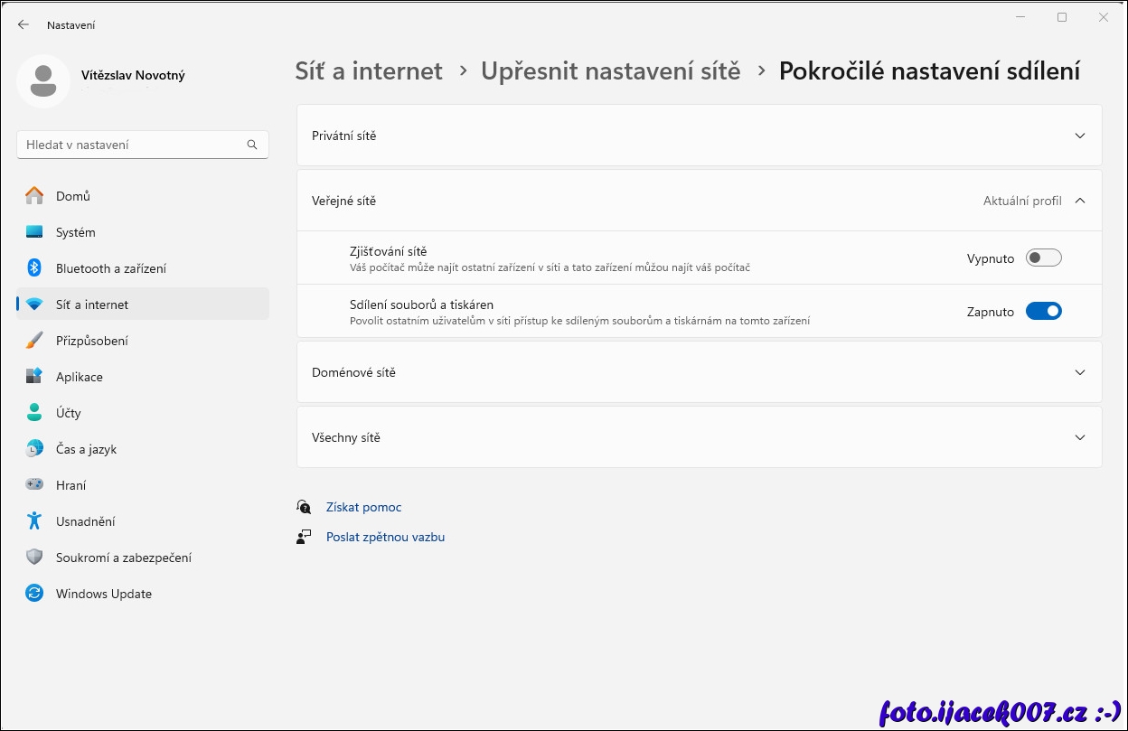 upřesnující nastavení sítě