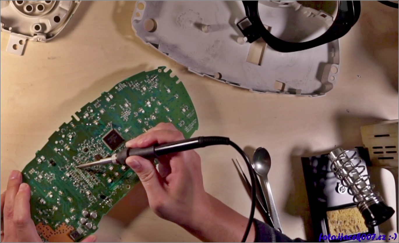 Oprava studeného spoje konektoru a plošného spoje.