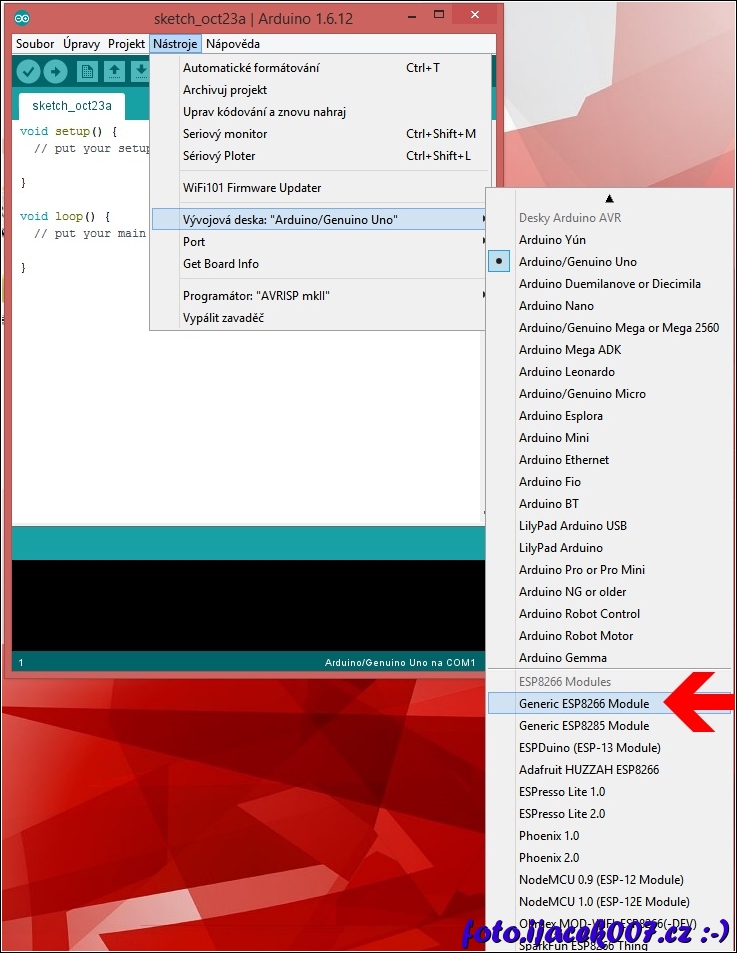 přepnutí rozhraní Arduino pro desku ESP8266