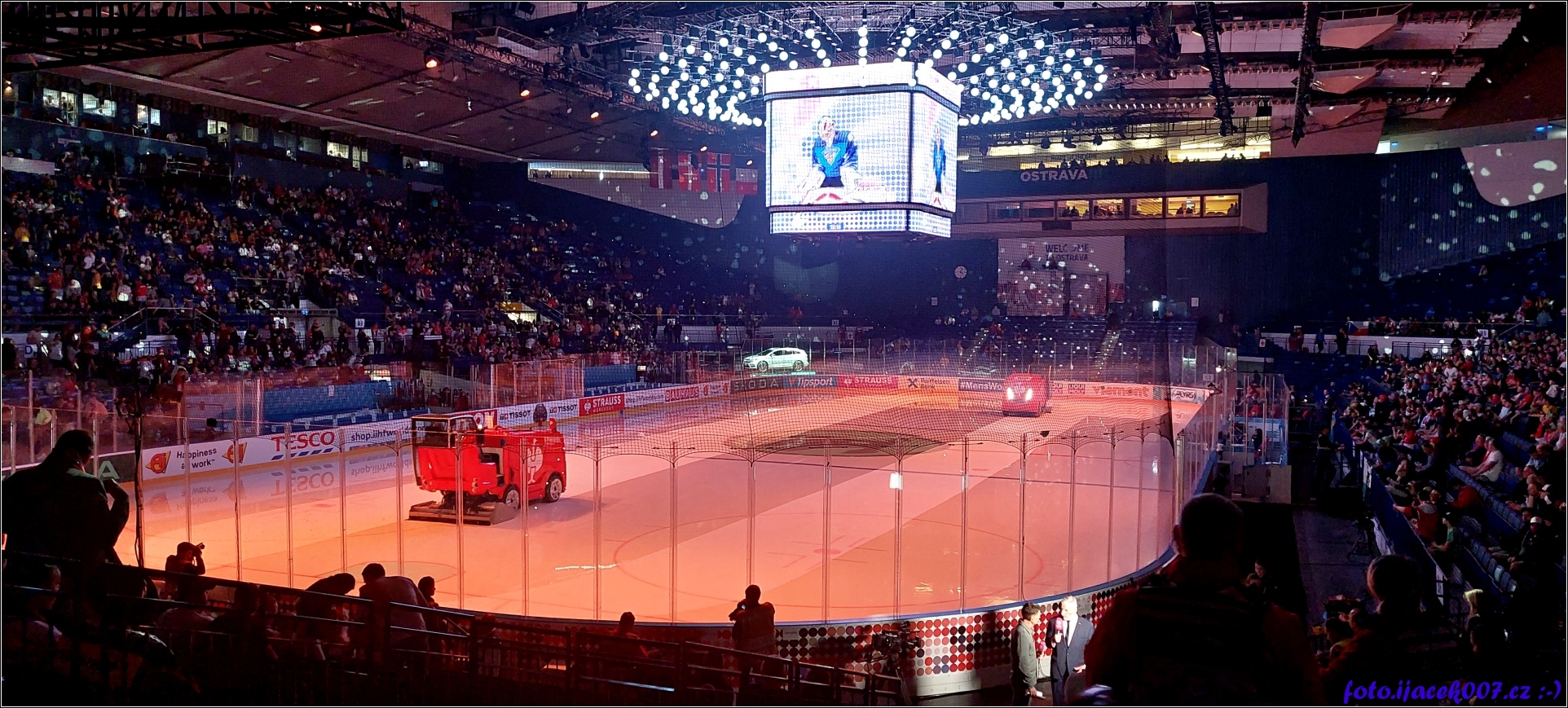 Pohled na upravu ledové plochy rolbou.