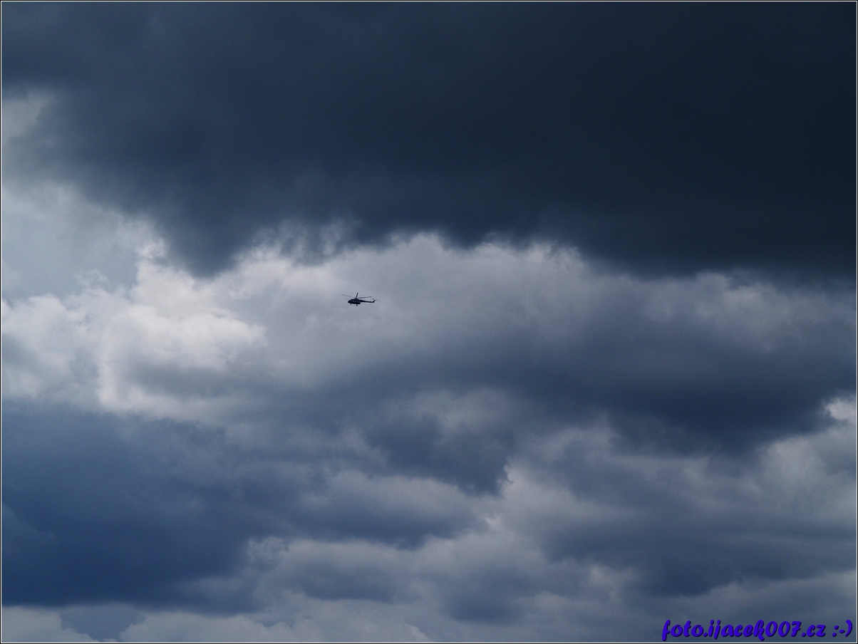 pohled na obrovský vrtulník ve velké oblačnosti