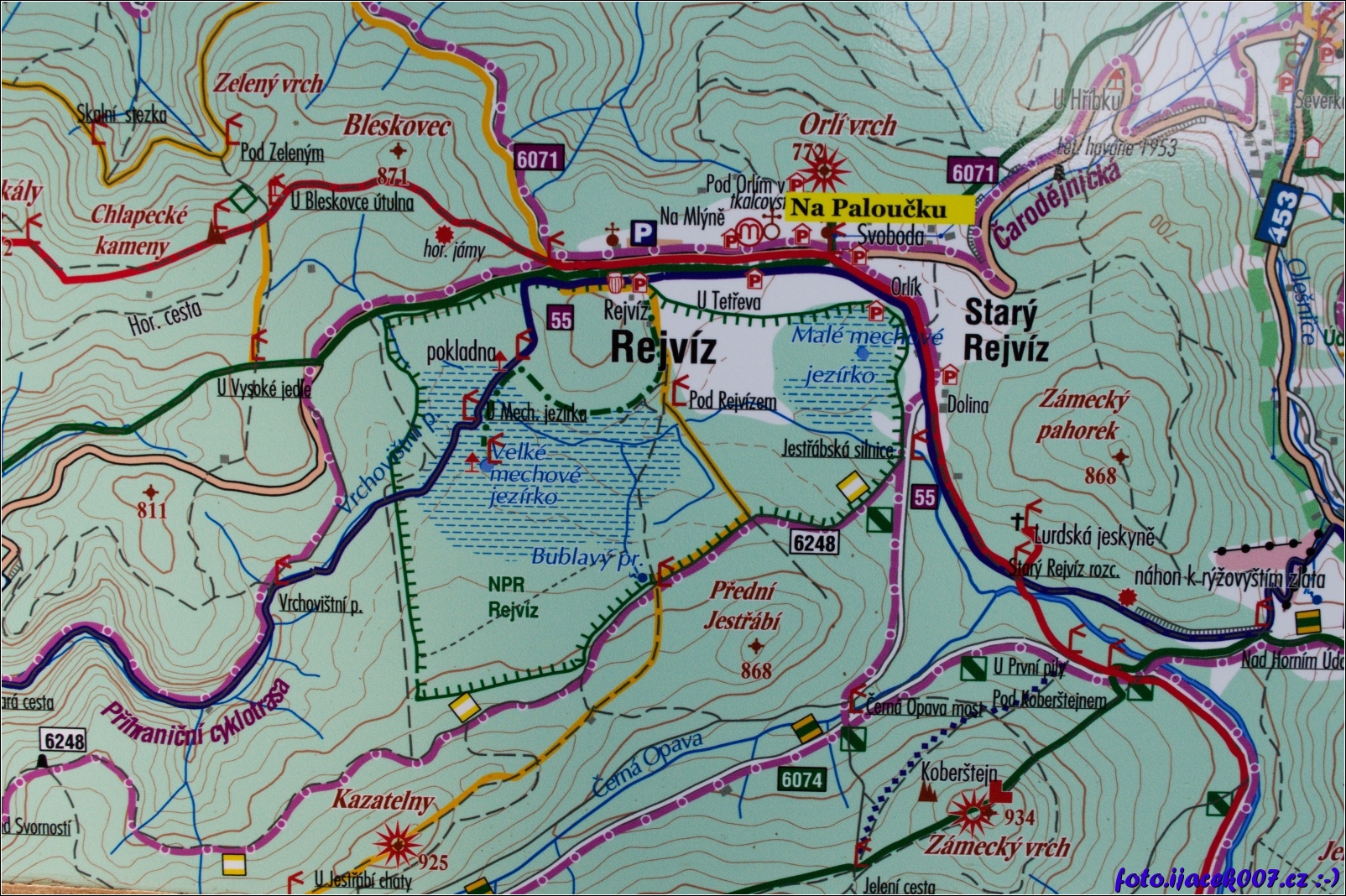 pohled na mapu okolí obce Rejvíz