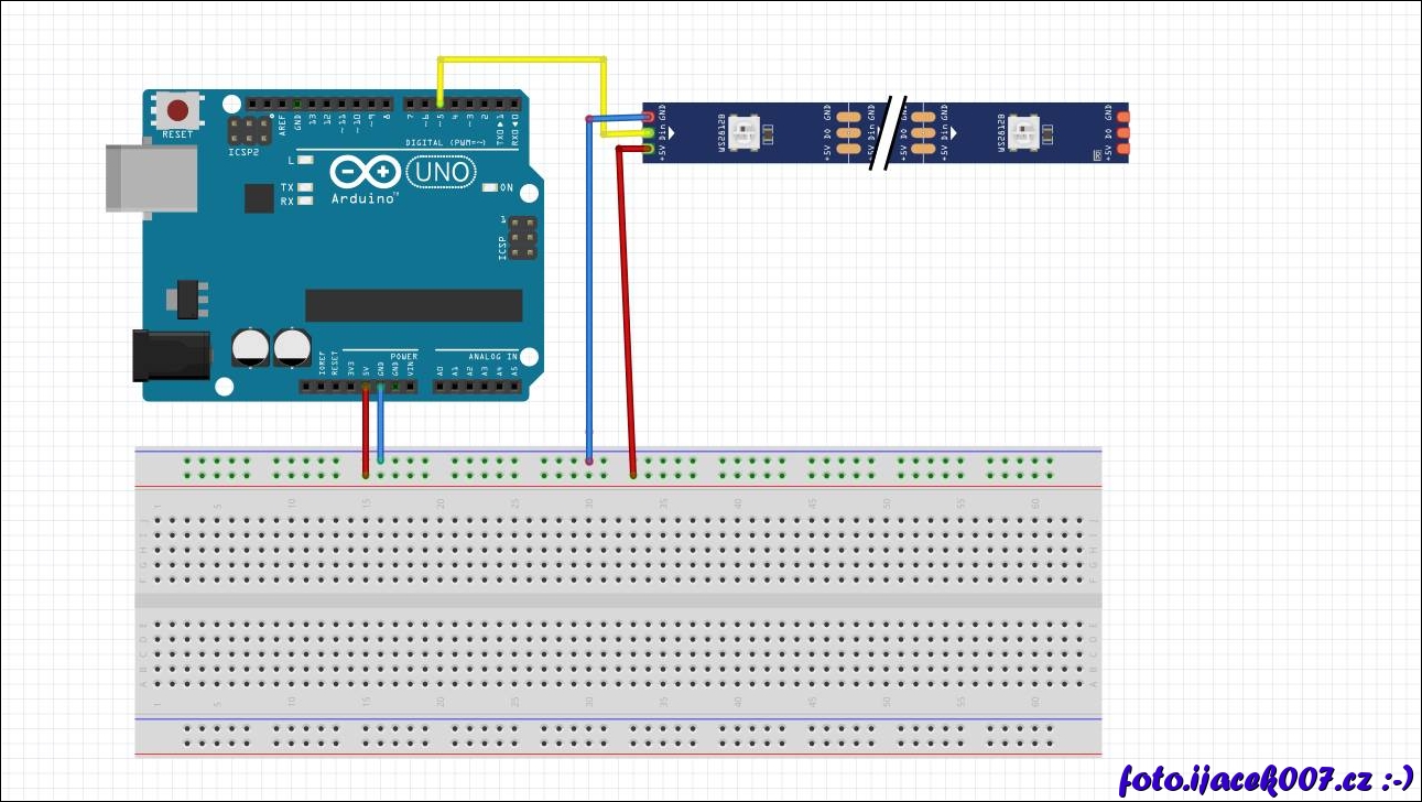 Schéma zapojení desky Arduino a LED pásku WS2812.