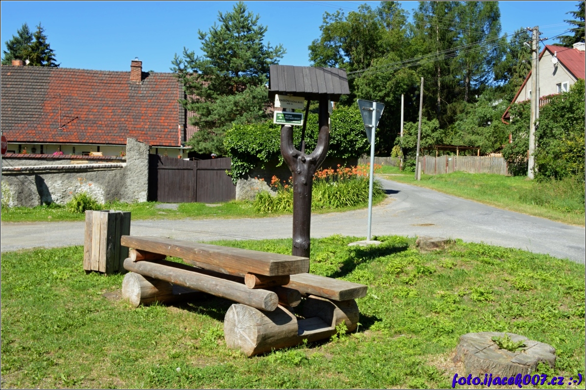 Točna autobusu a turistický rozcestník