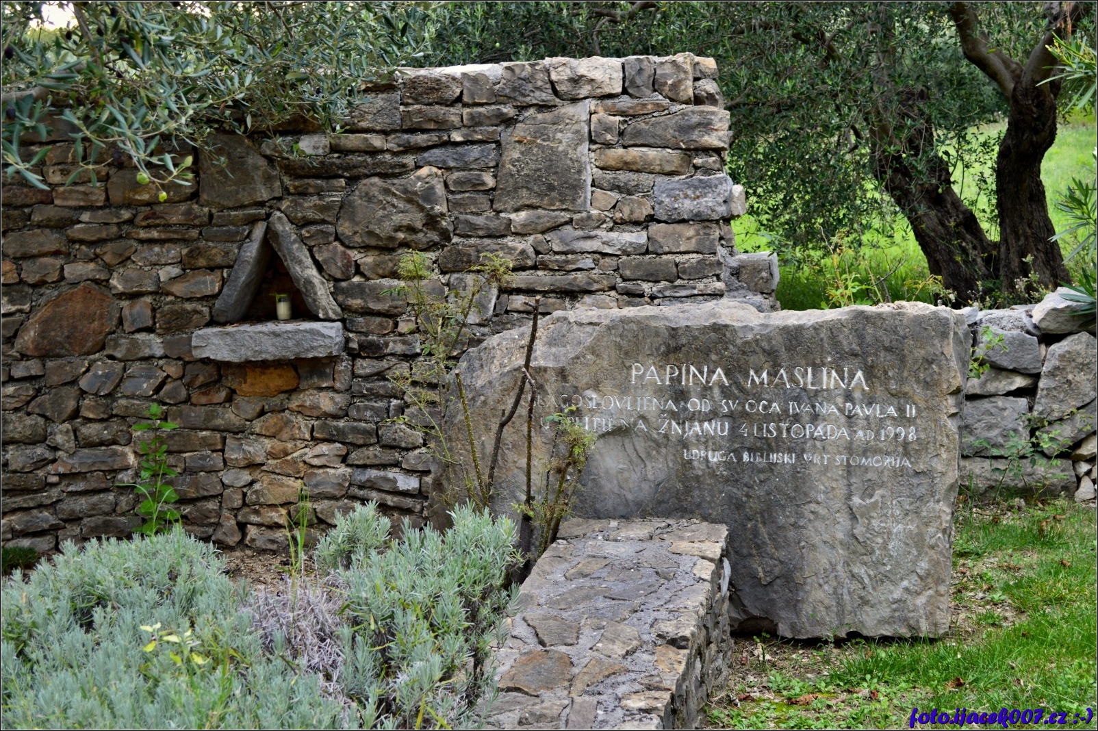 pohled na nápis v biblické zahradě