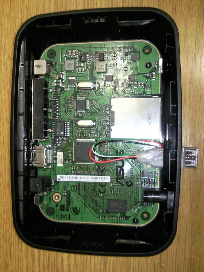 pohled na O!play s opraveným USB konektorem
