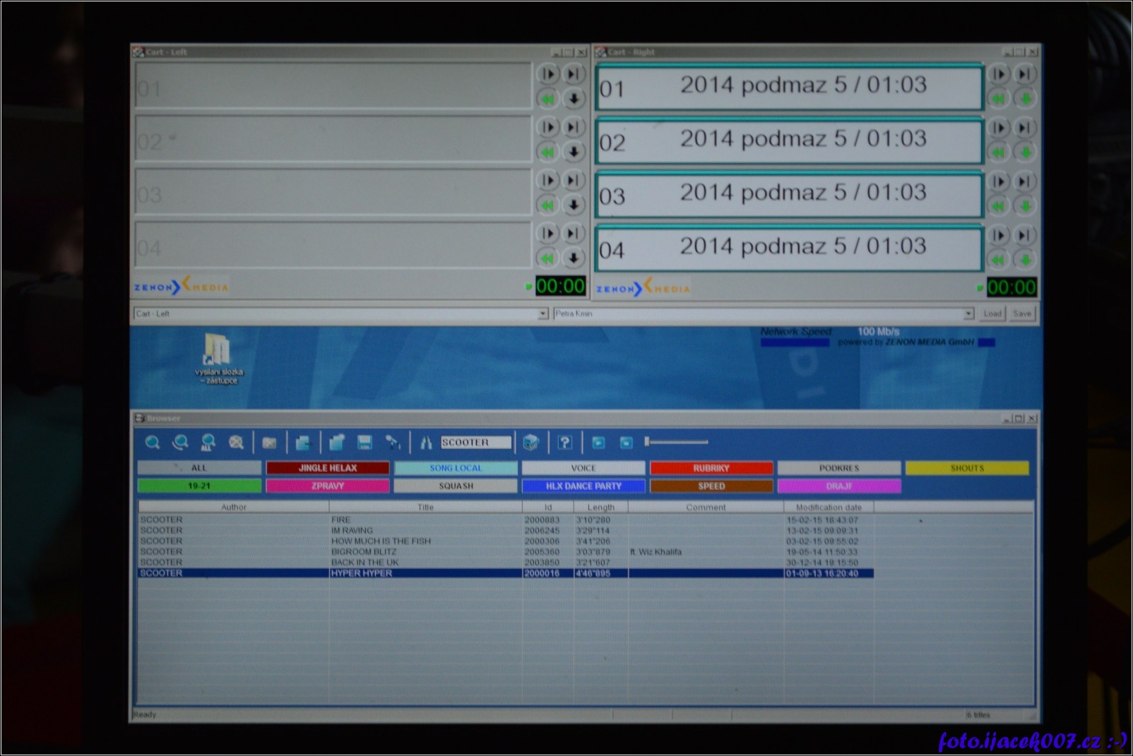 Pohled na monitor ze studia rádia Helax
