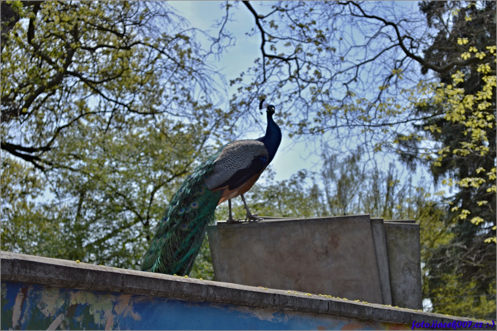 na všechny návštěvníky dohlížel zvědavý páv