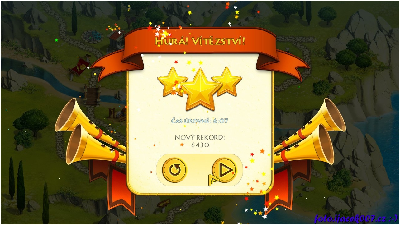 výsledné skore a počet hvězd získaných za splnění úkolu