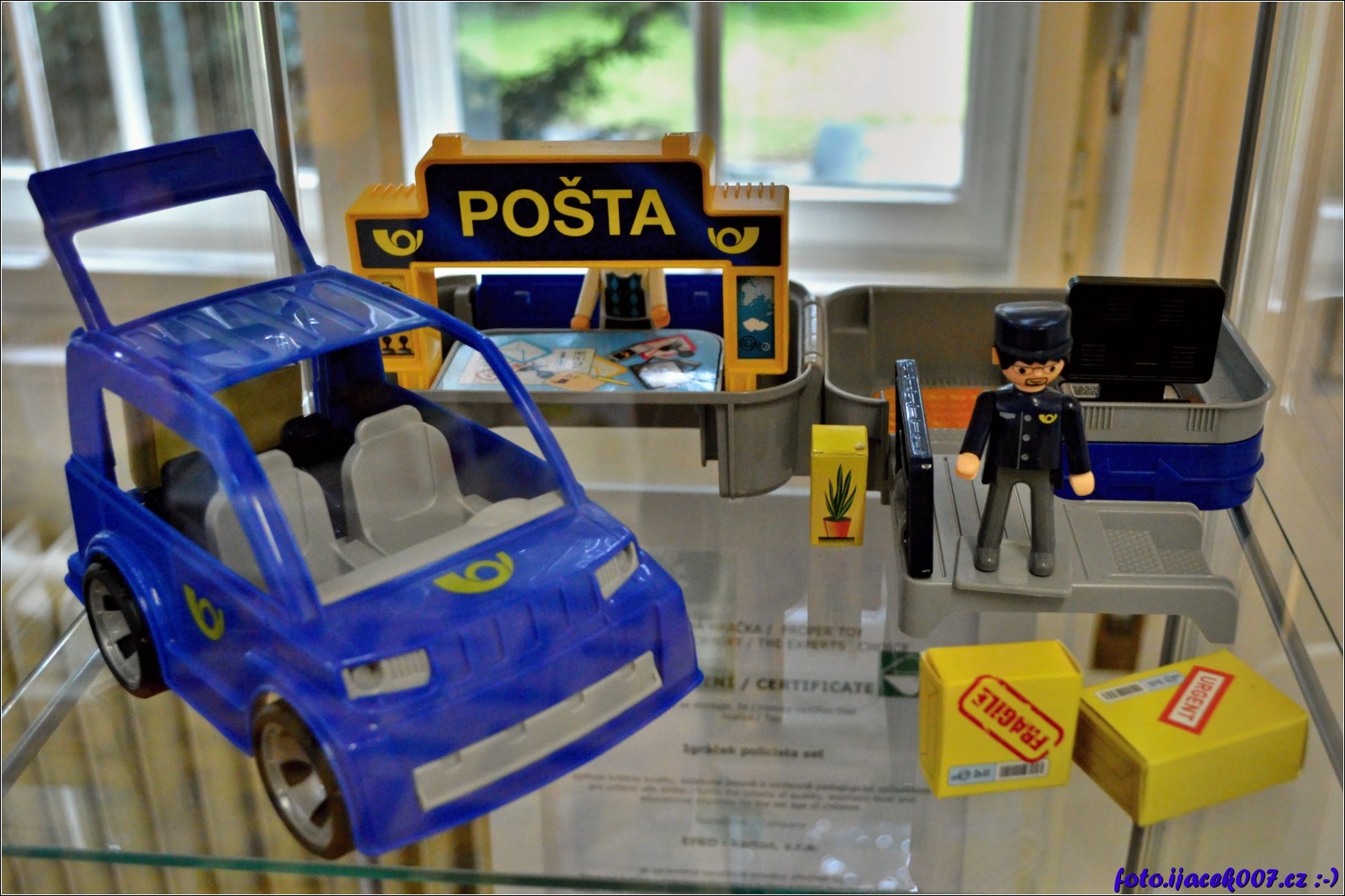 kolekce auta postavičky a poštovní přepážky