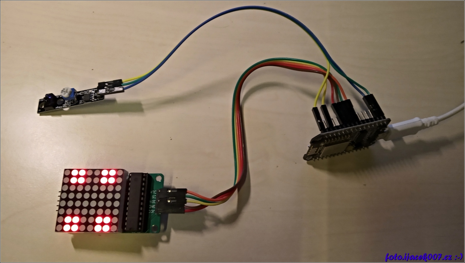 Spojení všech komponent LED displeje bezdotekového ovládaní a ESP8266