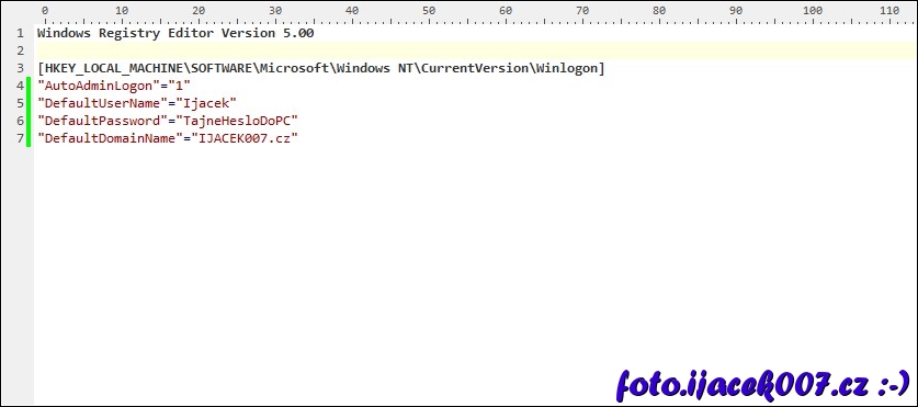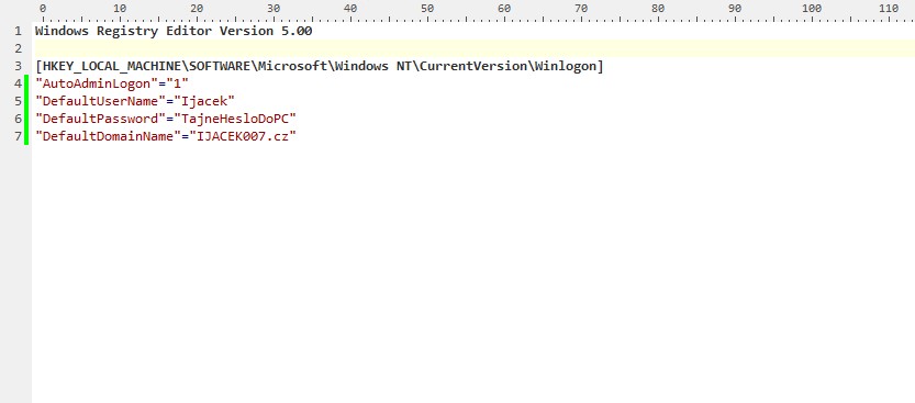 Uprava registru pro automatické přihlášení uživatele.