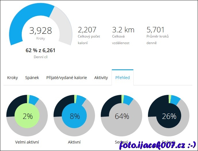 záznam pohybu odpočinkový den