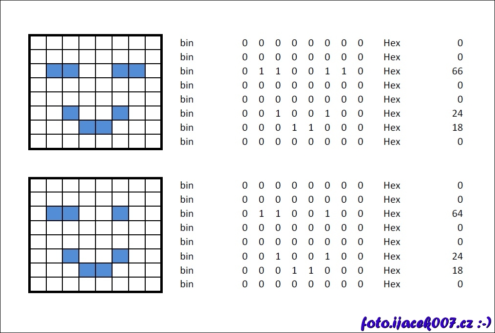 tabulka hex znaku pro práci s led zobrazovačem 8x8