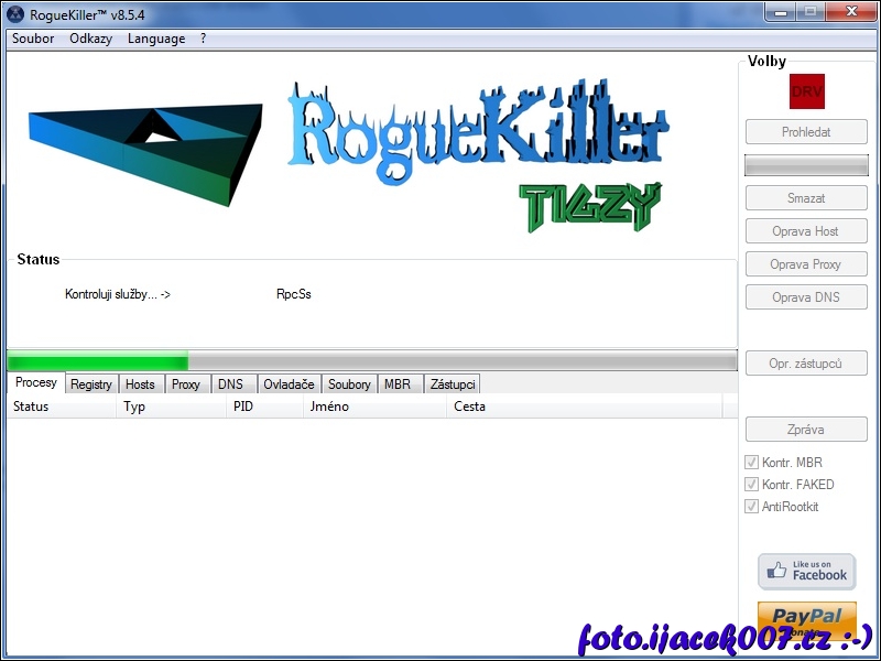 rozhraní programu RougeKiller a informace o probíhajícím testu.