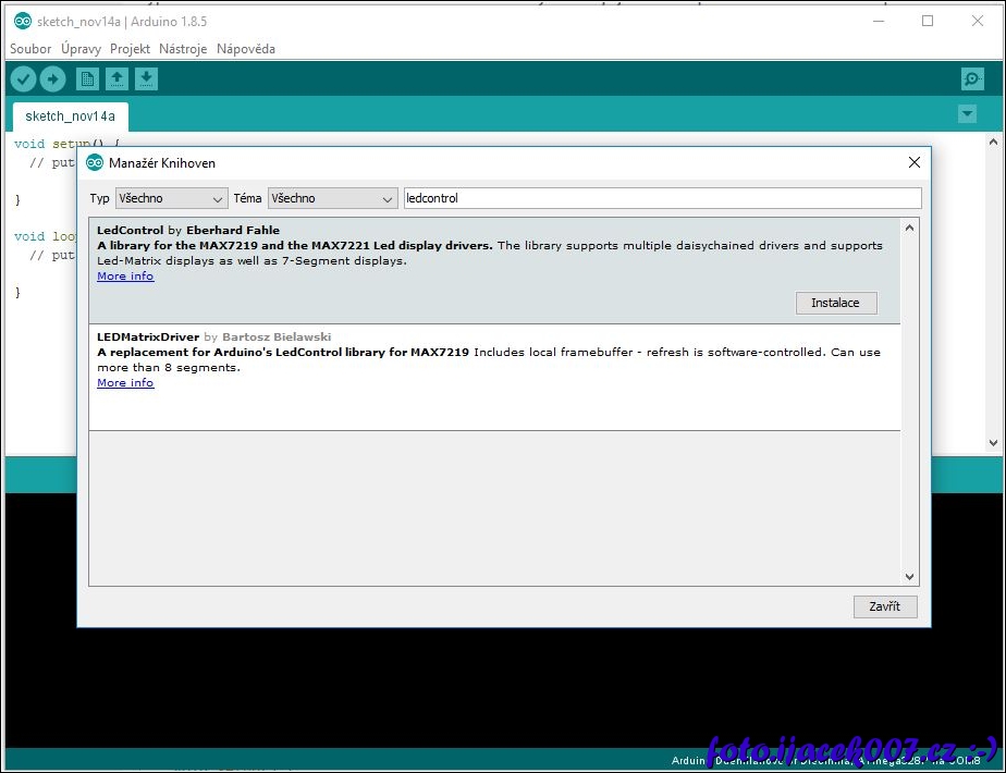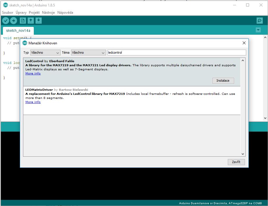 instalace knihovny LedControl přes manažera knuhoven