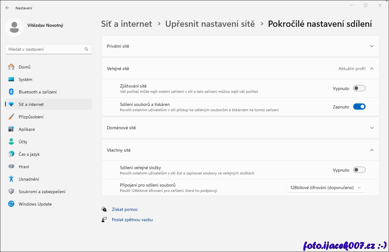 nastavení sdílení