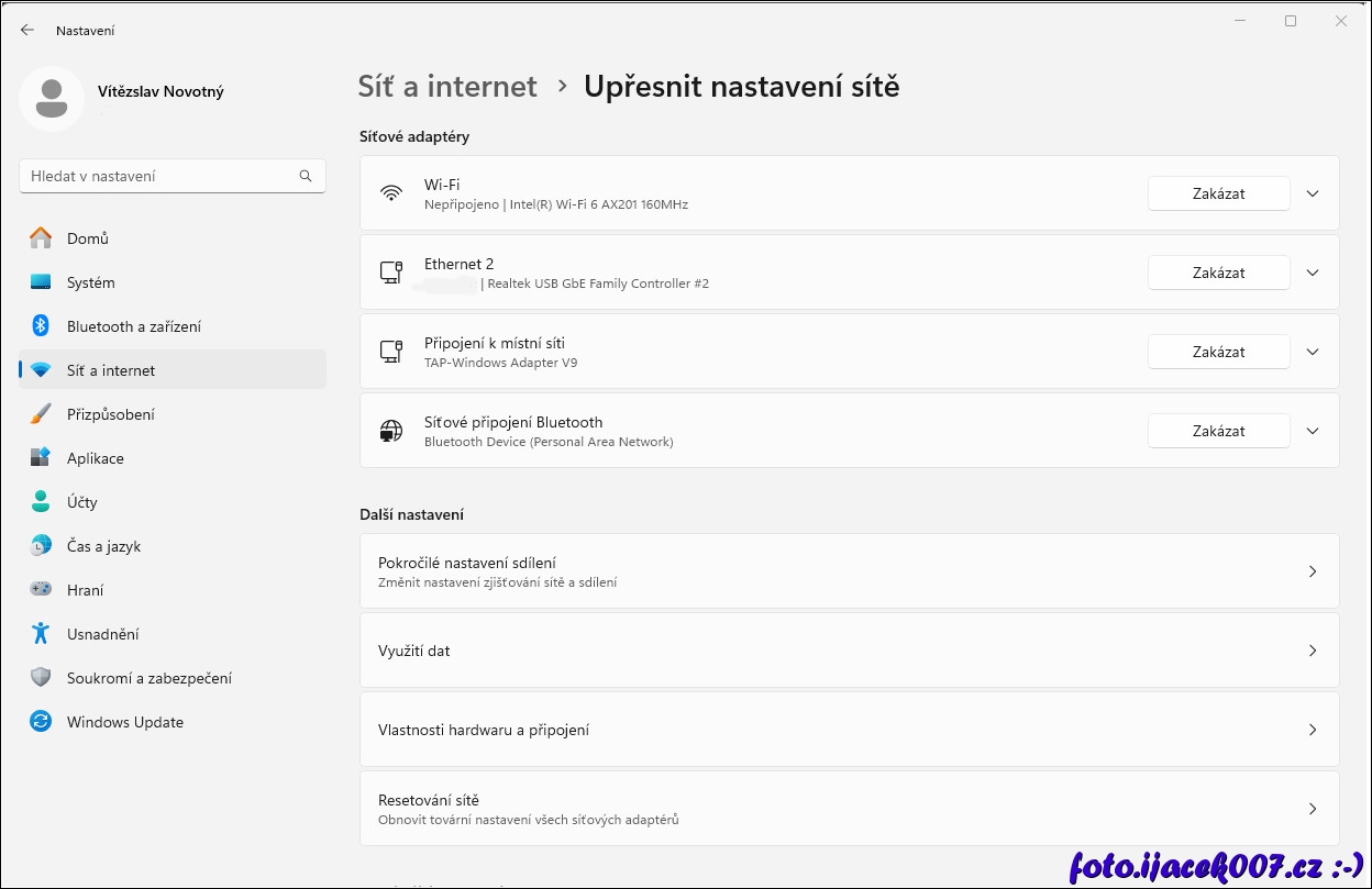 Rožšířené nastavení sítě.