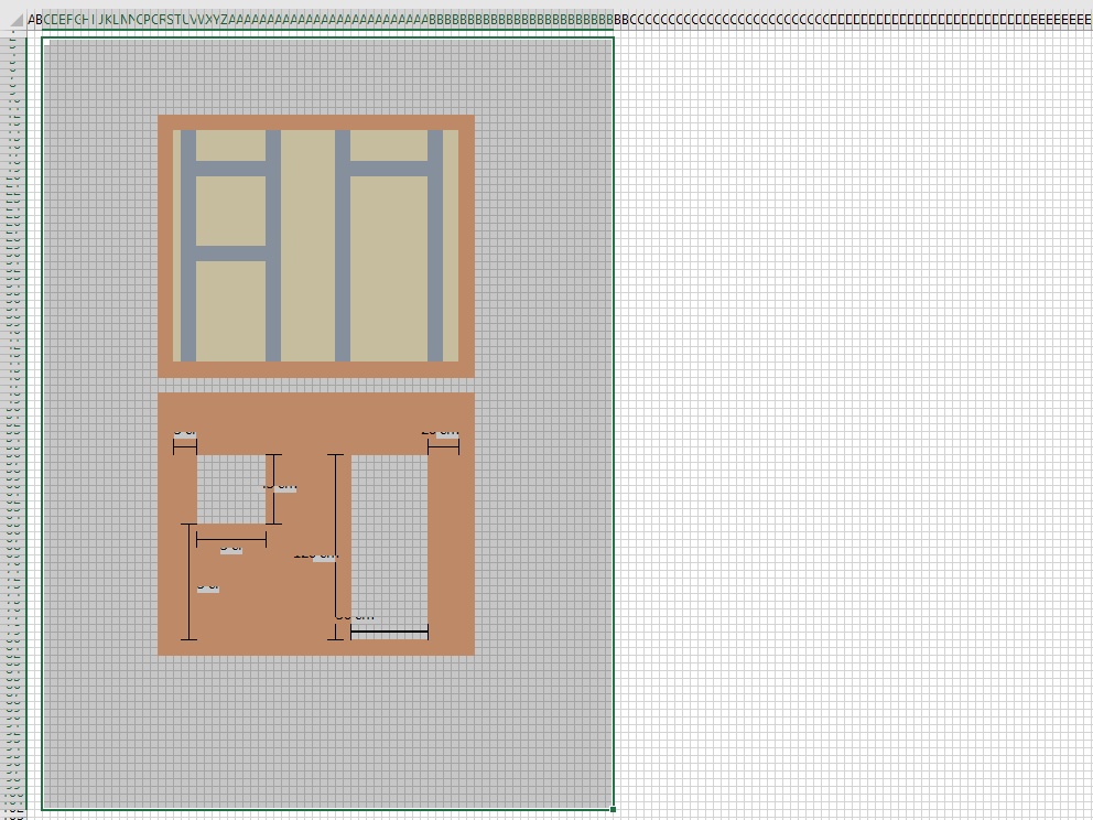v měřítku pomocí Excelu nakreslená podoba oken