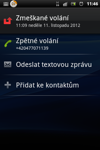 android zameškané volání