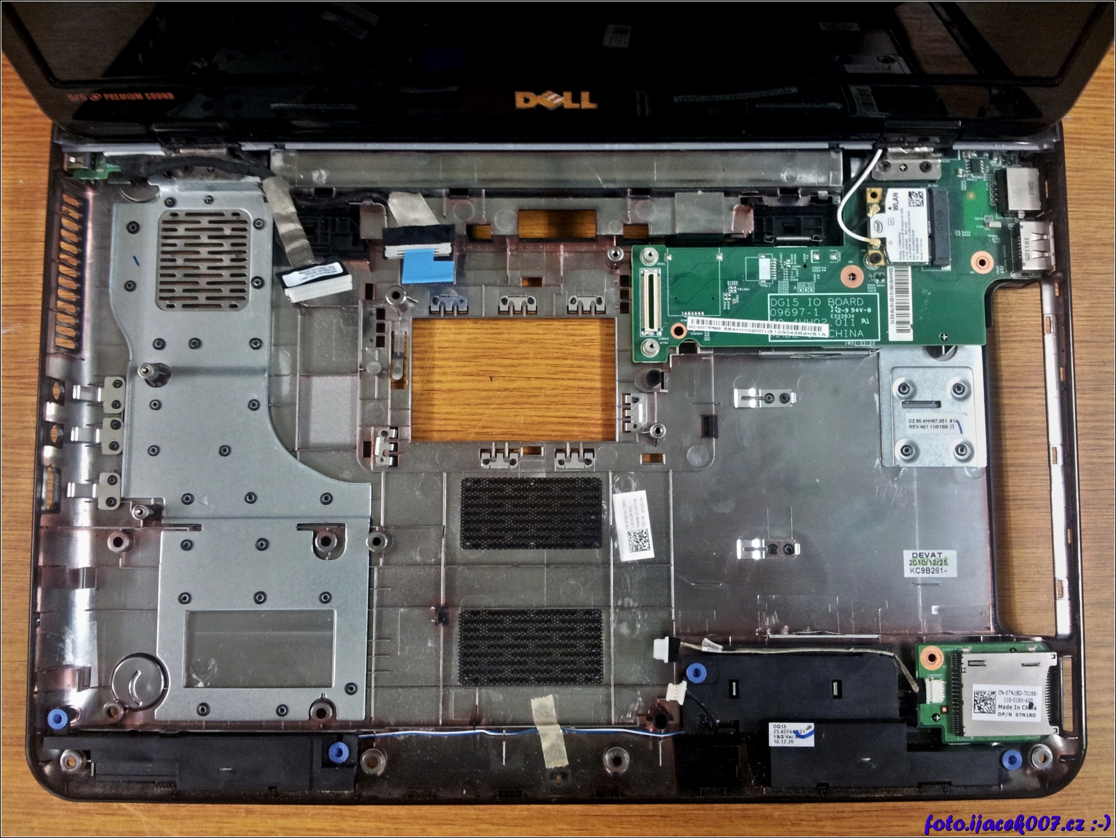 pohled na spodní kryt notebooku s demontovanou základní deskou