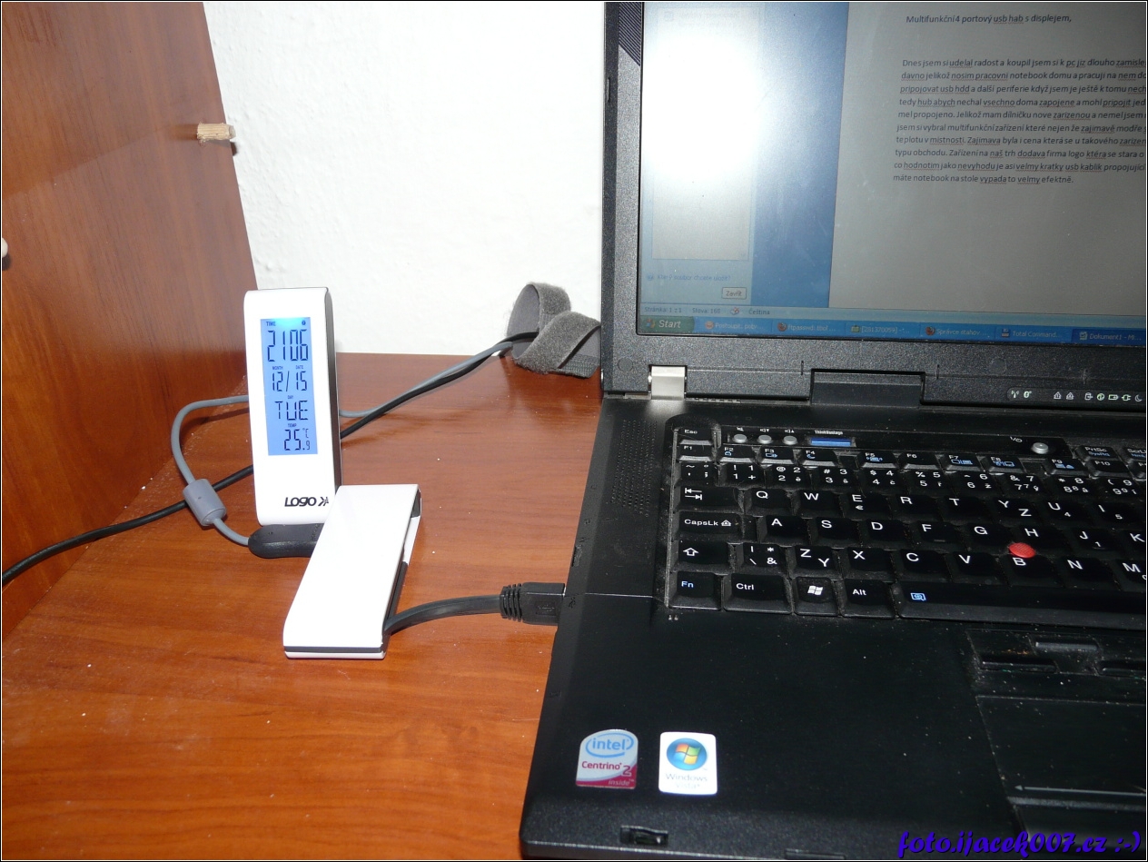 zapojeny usb hub s podrým podsvícením a udaji na displeji