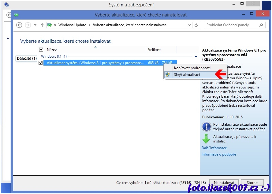skrýt aktualizaci