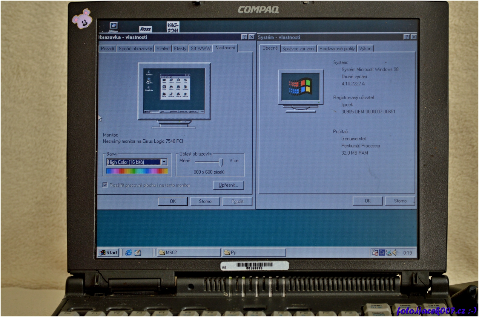 Compaq Armada 4130T a vlastnosti systému Windows 98