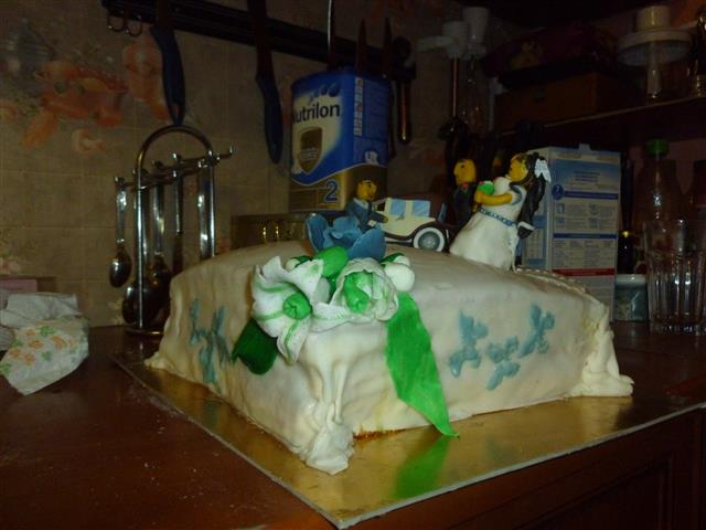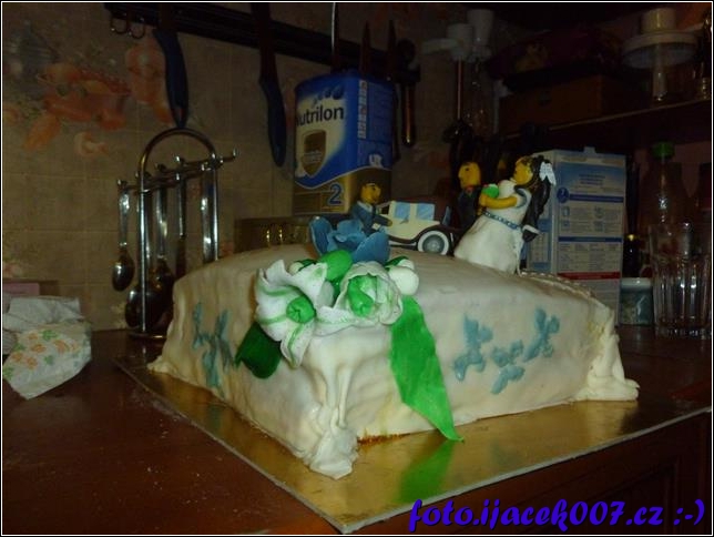 správný svatební dort musí mít nevěstu ženicha a ten náš měl i syna a auto.